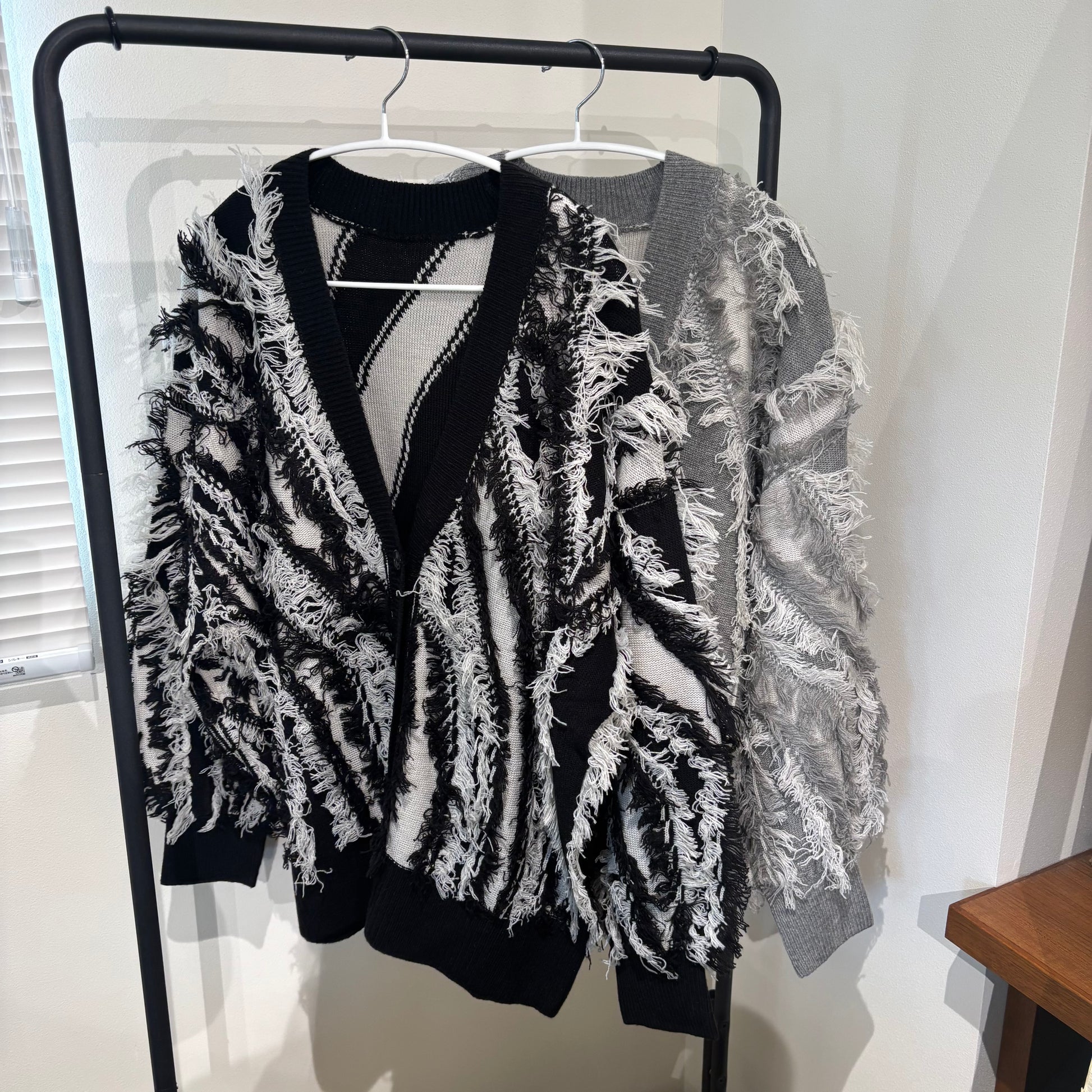 フリンジジャガード ニット Vネックカーデ [ELENCARE DUE]