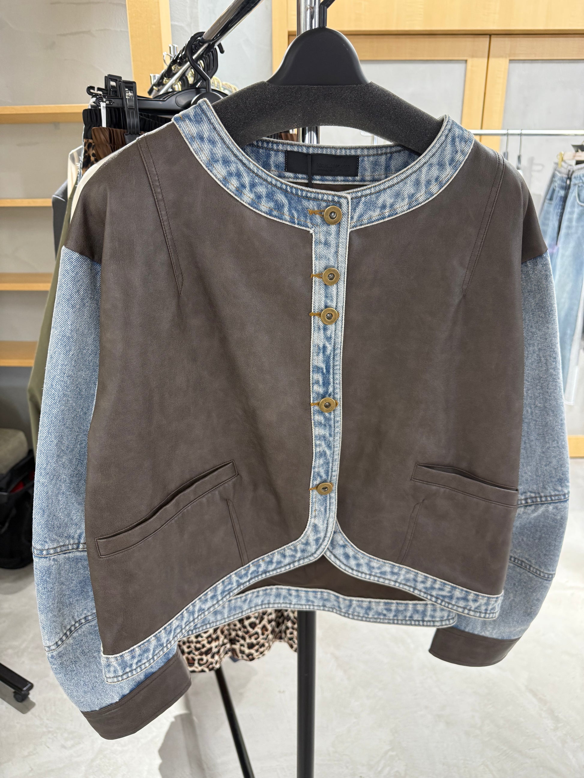 ノーカラードッキングデニムジャケット[MICALLE MICALLE]